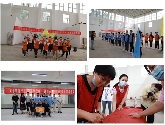 为迎接建党一百周年,BEAT365于5月27日、28日在体育馆3楼,开展主题为“学党史、践初心、开新局”的行政职员素质拓展培训。校长助理麻立峰出席开幕式并讲话,希望大家继续发扬美院自信自立、敢为人先的拼搏精神,凝聚共识、不忘教育初心,为学校内涵式发展贡献力量。全校160余名行政职员参加此次培训。全体职员在带队教师冯伟的带领下,绘制团旗、起队名、定口号、摆队形,凝聚团魂。在“...