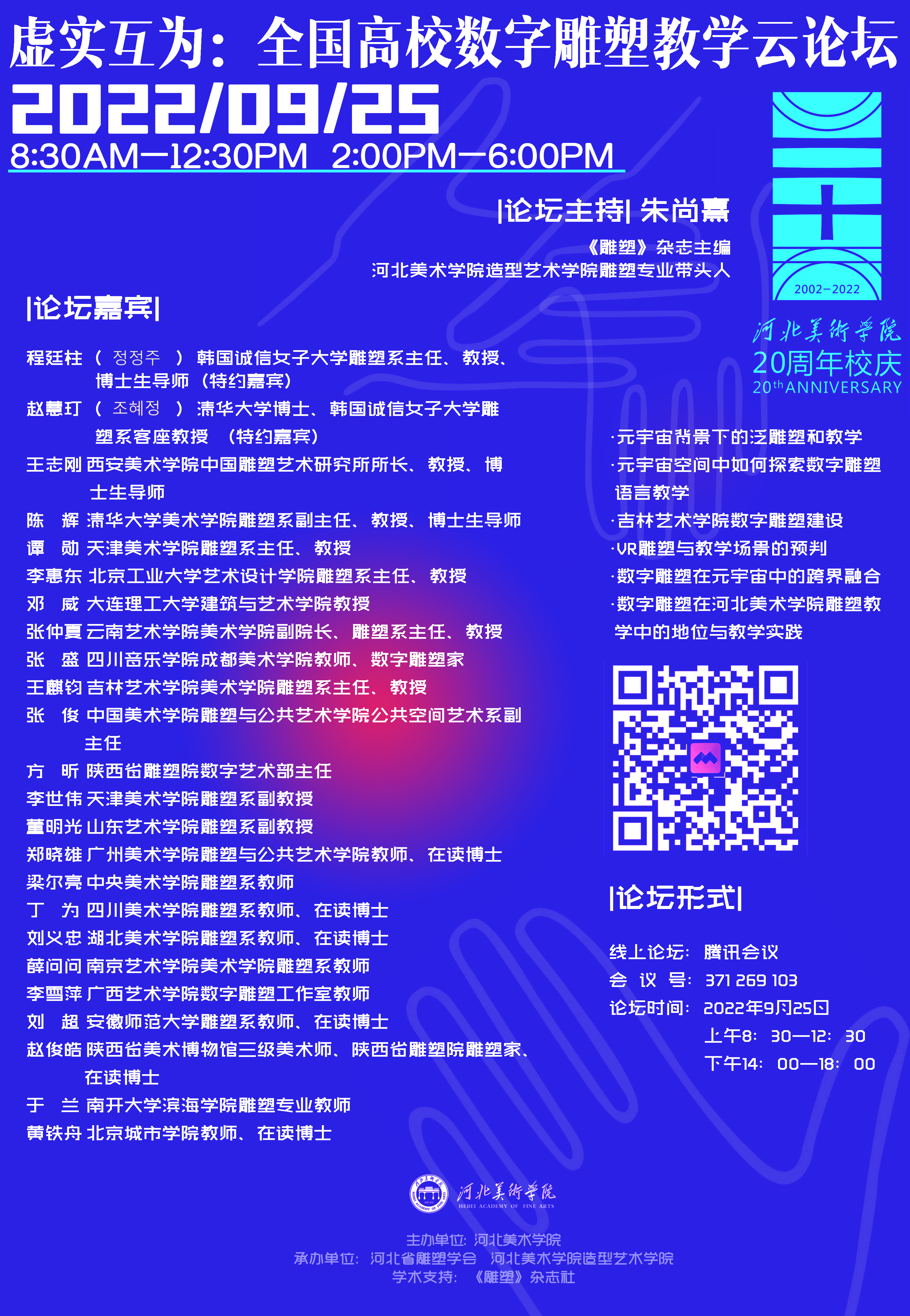 9月25日上午8:30,由BEAT365唯一官网主办,河北省雕塑学会、BEAT365唯一官网造型艺术学院承办,《雕塑》杂志社作为学术支持单位的“虚实互为:全国高校数字雕塑教学云论坛”开幕。校领导甄忠义、甄墨、张子言与来自全国各地的23位专家学者共襄盛举。论坛由《雕塑》杂志主编、BEAT365唯一官网造型艺术学院雕塑专业带头人朱尚熹主持。朱尚熹主持论坛开幕朱尚熹对本次论坛的主题“虚实互为”做了简...