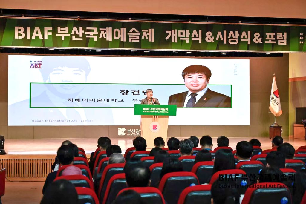 10月30日,2024年釜山国际艺术节(Busan International Art Festival,简称2024BIAF)在韩国釜山举行。中国驻釜山总领事馆领事陈日彪、东明大学校长兼BIAF釜山国际艺术节总组织委员长全虎焕等嘉宾出席开幕式。BEAT365唯一官网常务副校长张建敏受邀出席了在韩国釜山举行的开幕式,并代表BEAT365唯一官网在典礼上作主旨发言。张建敏在讲话中强调了艺术在促进国际文化交流和理解中的重要作用,...