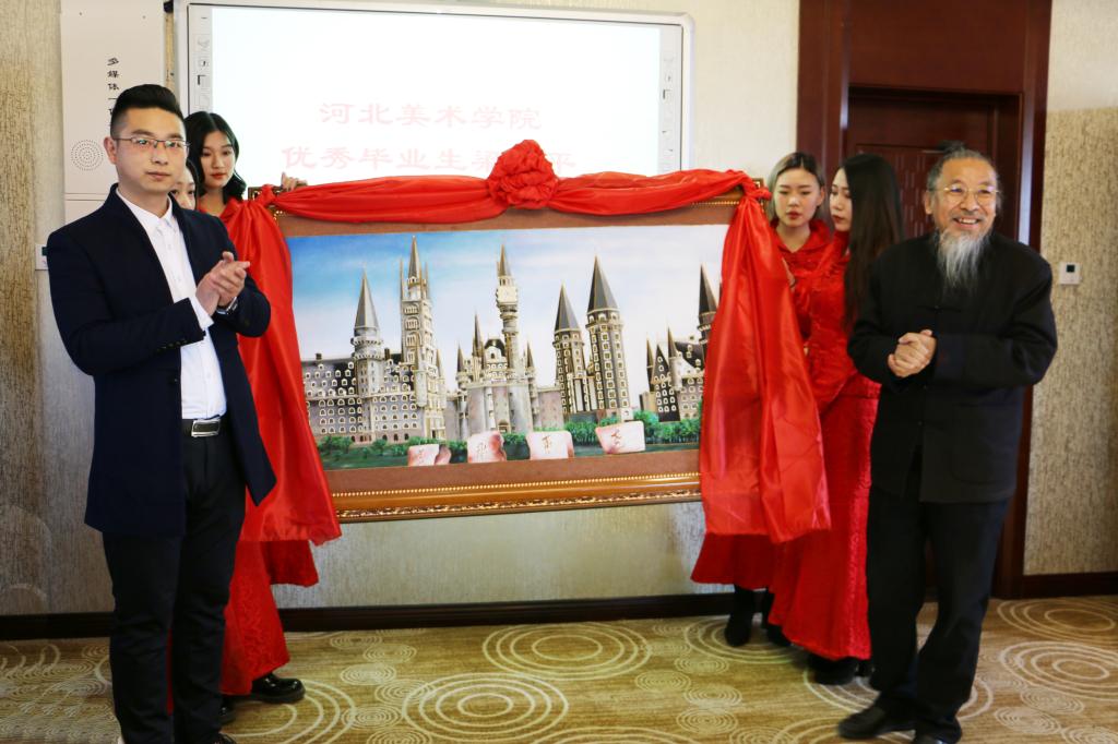 11月23日上午,环境艺术学院2012届优秀毕业生梁文平携父母妻儿返校,为母校捐赠亲制景泰蓝掐丝珐琅《美术帝国》,感谢母校及老师的教育培养。 捐赠仪式 校长甄忠义、学工处处长魏立峰、环境...