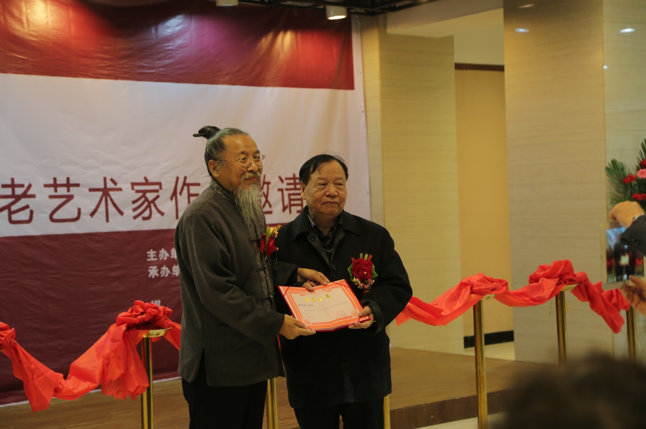 甄忠义校长为张蒲生先生颁发收藏证书 |