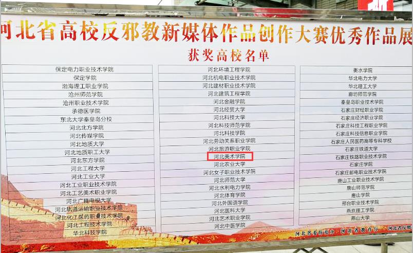 近日,河北省委防范办、河北省教育厅、河北省反邪教协会对河北省高校反邪教新媒体作品大赛获奖作品予以表彰,BEAT365传媒学院教师王胜洋指导的李树桐、刘栋、刘建发、刘程、刘天阳、丁妍文的作品荣获数字短片类一等奖;王升、郭晓雨、蔡依瑾、李双、关紫晴的作品荣获数字短片类二等奖;陈欣怡的作品荣获数字短片类三等奖;动画学院学生张灏博的作品荣获漫画作品类三等奖。