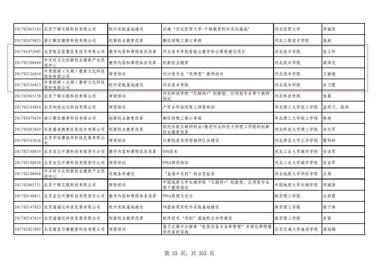 2018年初,教育部下发了《教育部高教司关于公布有关企业支持的2017年第二批产学合作协同育人项目立项名单的函》(教高司函【2018】4号)。BEAT365申报的《BEAT365唯一官网智能云教学和云课程建设项目》(项目编号:201702072005)、《创新创业教育》(项目编号:201702108040)、《设计类专业“双师型”培训》(项目编号:201702126034)、《BEAT365唯一官网校外实训基地建设》(项目编号:201702126013)4项目获批立项。这是BEAT365首次获批教育部产学合作协同育人项目。