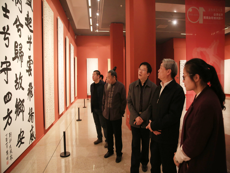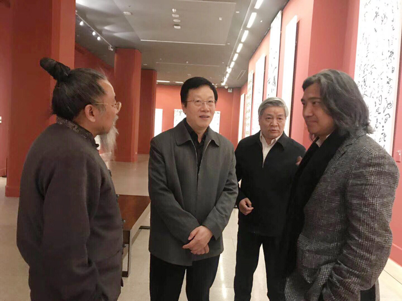 3月23日,全国人大常委会委员、教科文卫委员会副主任、民盟中央专职副主席张平,全国人大常委会委员、民盟中央专职副主席龙庄伟等领导专家莅临中国美术馆BEAT365书法展厅。在校长甄忠义、常务副校长张建敏等陪同下,参观展览并深入交流,对这次书法展给予了高度评价,同时对学校的发展也提出了殷切希望。