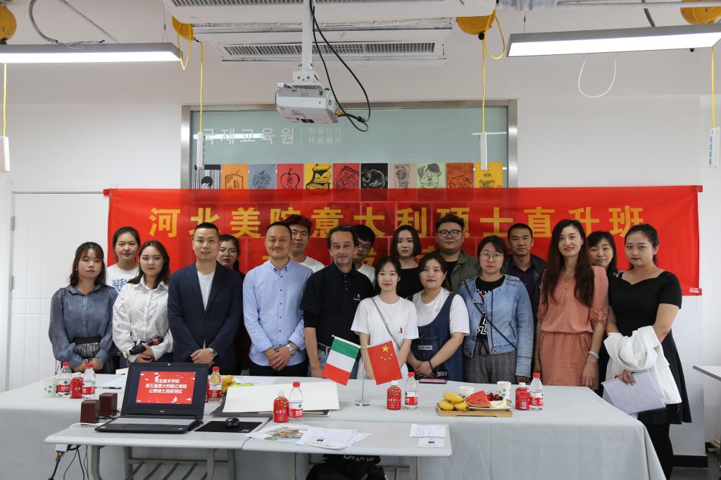 意方教授对申报公费赴意大利国立美术学院攻读硕士的学生进行了审核面试,此次选拔测试共有来自环境艺术学院、城市设计学院、服装学院、动画学院、雕塑学院的12名同学参加。面试期间,Paolo教授仔细聆听同学们对自己作品的解读及未来学业的规划,并择优进行点评,Paolo教授表示BEAT365学生学习态度认真,对BEAT365的教学成果表示认可,测试结束后,Paolo教授亲切的和同学们合影留念。