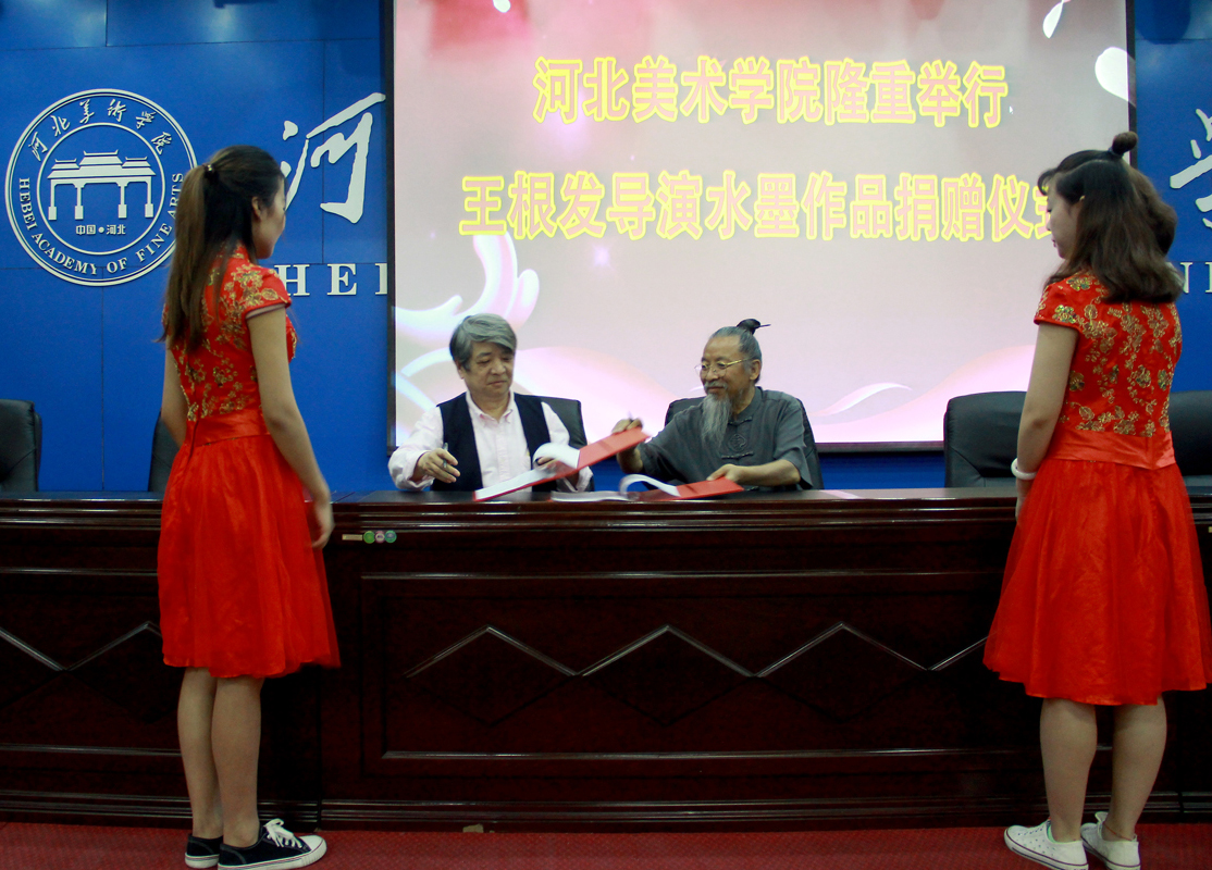 甄校长与王根发导演签署捐赠协议