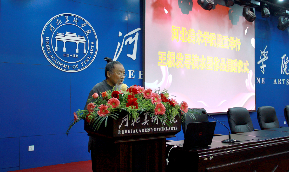 王根发导演在讲话中表示这些原创的资料是经过深思熟虑,精心创作的,愿把毕生的心血留给美院,回报社会。