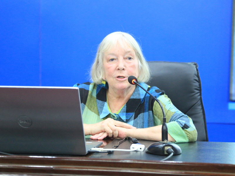 在北高五报告厅,常务副校长张建敏出席,并热烈欢迎大英博物馆东方古画修复专家邱锦仙女士和大英博物馆图画艺术修复保护部联合主管乔安娜(Joanna Finkel)女士。