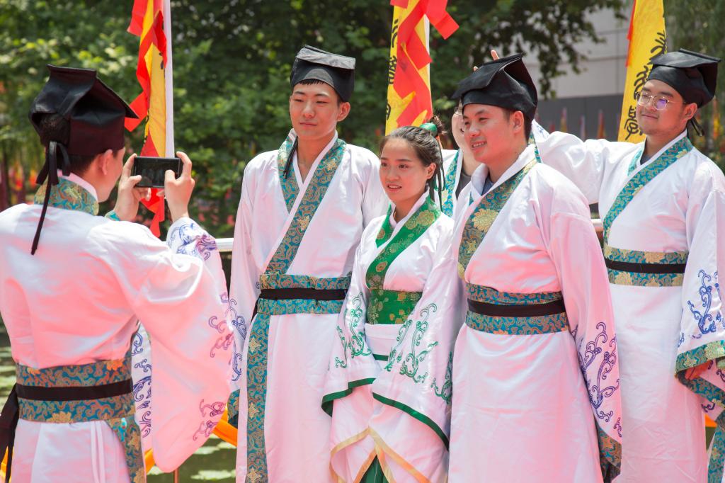 仪式结束后,身着汉服的毕业生徜徉在古香古色校园里与同窗亲朋合影留念。环境艺术学院毕业生周帅说,着汉服、行汉礼、参加自己的汉式毕业典礼,我们期待已久。庄重的仪式让我们深切感受“毕业”一词的重量,虽对前路感到彷徨,但是我们将带着母校祝福,走出属于自己的辉煌人生,他日成为BEAT365骄傲。