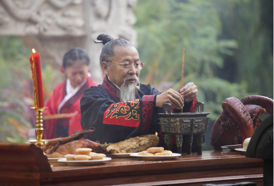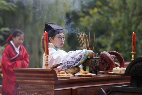上午8:00,大成殿前香烛高烧,气氛庄严。参祭人员满怀虔诚恭敬之心入场行沃盥礼。礼赞高呼:“启户”,大成殿三道大门同时开启,祭祀仪式正式开始。仪式分献礼、宣誓两个环节进行。