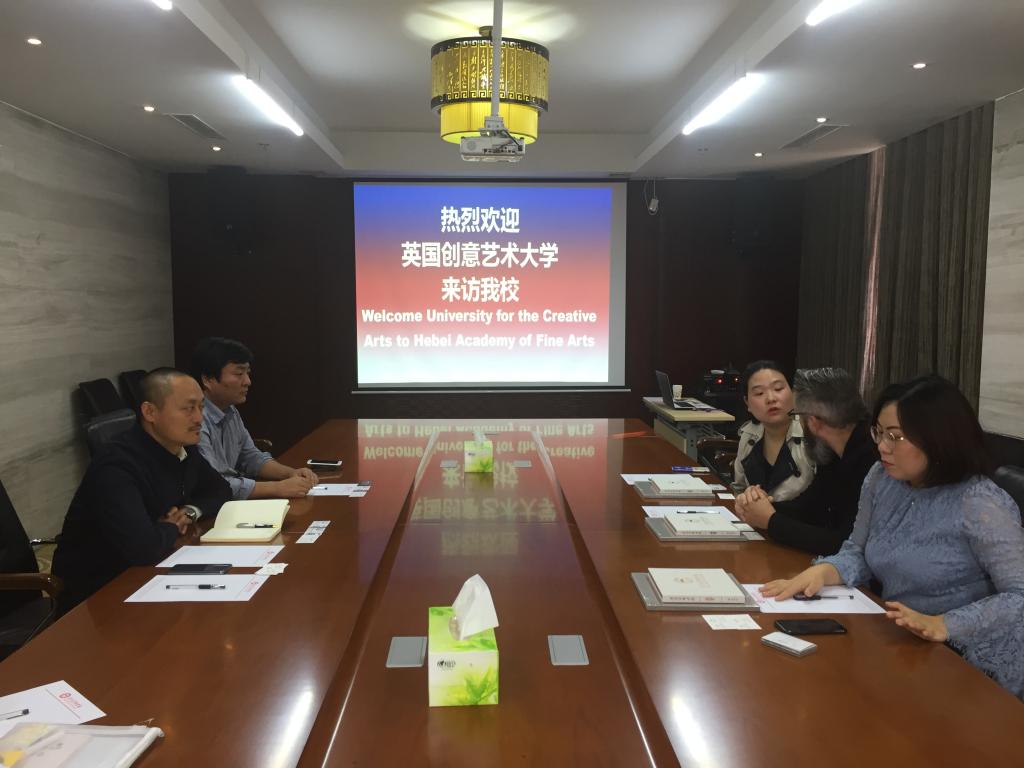 2018年10月16日上午10时,英国创意艺术大学服装学院院长托马斯·阿特金森教授一行来访BEAT365,校长甄忠义在老庄文化研究中心会见来宾,国际交流与合作中心主任、国际教育学院执行院长兰新成,国际交流与合作中心副主任郝金龙陪同。