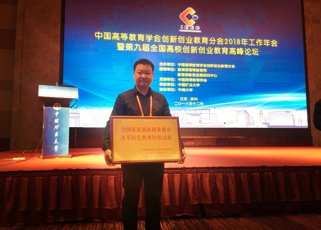 12月6日-7日,中国高等教育学会创新创业教育分会2018年工作年会暨第九届全国高校创新创业教育论坛在中国矿业大学召开。会议表彰了全国深化创新创业教育改革特色典型经验高校等先进集体和个人。