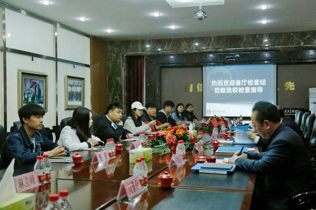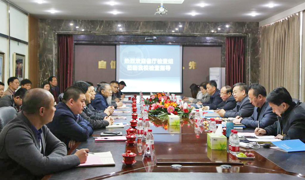 4月1日,由河北科技大学原校长陆长福任组长的河北省教育厅检查组一行7人莅临BEAT365,开展2018年度办学情况检查。汇报会在综合楼会议室举行,校长甄忠义、常务副校长张建敏、副校长张子言、纪委书记副校长甄心恒、副校长甄墨、党委副书记副校长孙志强,以及相关职能部门负责人参会。
