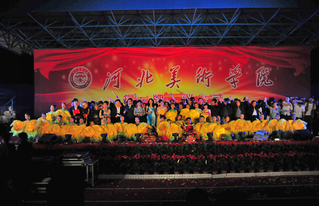 在主持人宣布演出开始后,伴随着徐徐的音乐声,一曲歌伴舞《举杯吧 朋友》携带着红色的激情使整个舞台充盈着欢乐的气氛,十几位靓丽少女身着鲜红的长裙,跳起了欢快的舞蹈。接着,一曲《我的未来不是梦》唱出了我院学生的豪情壮志,动感舞姿与音乐的完美结合无不感染着现场的每一位观众。曾获河北省戏剧节优秀表演奖,河北戏剧"百花奖"表演一等奖,河北省京剧"双十佳"专业演员"十优"称号的国家一级演员赵玉华和河北省石家庄地区京剧团的武键蓉分别演唱了戏曲名段《贵妃醉酒》选段和《红娘》选段,展示了老一辈艺术家的风采。大型舞台剧《盛世长安》的出现使晚会现场顿时群情激昂,掌声雷动,展现出我院学生对艺术的热爱与追求。院长甄忠义先生怀着激动的心情登上舞台对前来观看晚会的领导、嘉宾、朋友表示感谢,以他特殊的方式激起全场热情,获得全场观众的阵阵喝彩,把整场晚会的气氛推向了高潮。随后各种节目轮番登场,异彩纷呈。