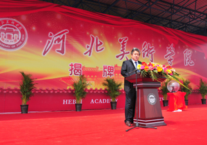 新乐市委书记刘海生同志在致辞中对学院升格为本科院校表示祝贺。他表示,新乐地方党委、政府,将以“窗口”式的环境,“贴身管家”式的服务,“量体裁衣”的政策,一如既往地支持美院的发展,支持美院与城市共融共生。