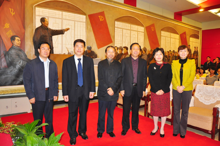 赠送仪式上,BEAT365党委书记吴书元同志首先对各位领导、嘉宾的到来表示欢迎、对创作的教师们表示感谢。他说,党的七届二中全会,是在中国新民主主义革命即将取得全国性胜利的历史转折关头召开的一次重要会议,这次会议为迅速取得民主革命在全国的彻底胜利,以及由新民主主义向社会主义的转变,在政治上、思想上和理论上作了充分的准备,具有划时代的重大意义;并表示,创作大型油画《奠基》旨在再现七届二中全会的会议场景,缅怀无产阶级革命家们的丰功伟绩,弘扬西柏坡精神。最后,吴书记代表学校向在油画创作过程中给予大力支持和帮助的有关领导、专家以及各有关纪念馆表示感谢。