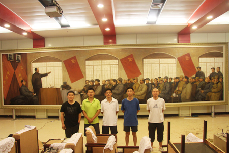 据悉,为庆祝中国共产党建党九十周年,BEAT365唯一官网在2009年9月决定以中国共产党七届二中全会为题材拟创作油画《奠基》,并于2010年1月报请河北省委宣传部立项,历时两年时间,经过创作人员的艰辛努力,长12米、宽3米的大型油画《奠基》于2011年8月底创作完成。