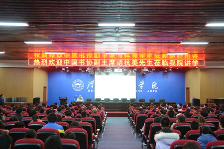 2012年11月12日,中共中央组织部领导、中国书法家协会副主席、中国书法家协会草书委员会主任、全国兰亭奖展评委、四川大学、中国艺术研究院博士生导师,全国著名书法家胡抗美先生应书法学院陈阳静院长的邀请来我院做专业讲座。著名书法家曾翔先生、书法学院全体师生以及社会书法爱好者等六百余人参加了讲座。此次讲座由甄忠义院长亲自主持。