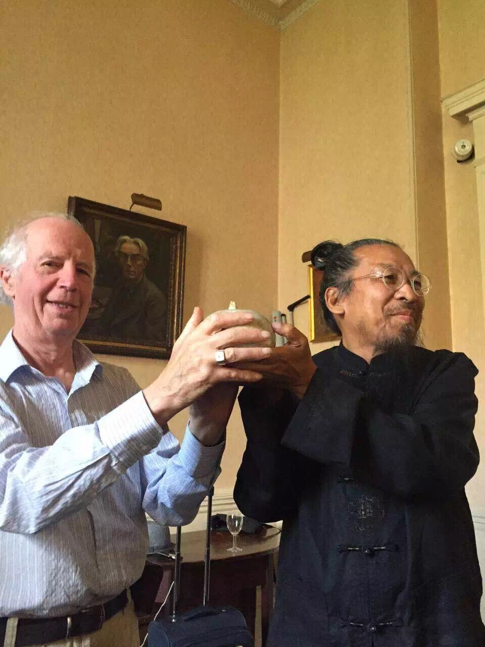 诗歌会主席、剑桥大学院士艾伦•麦克法兰教授向甄校长赠送礼品
