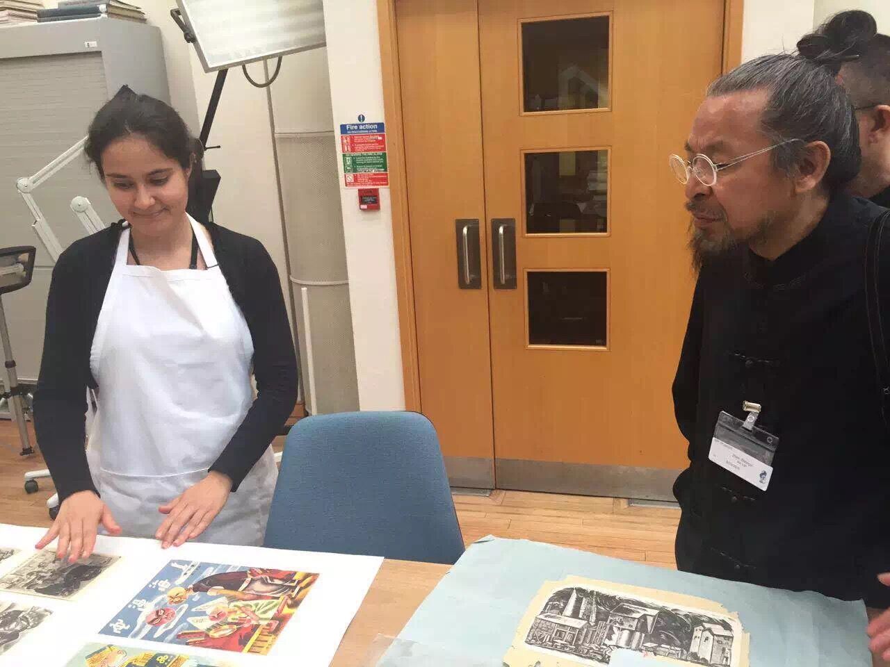 当天上午,甄校长一行受到大英博物馆东方书画修复中心负责人邱锦仙老师热情接待。随后,他带领甄校长等人参观了修复中心及正在修复的古画。椐邱老师介绍,博物馆内展出的中国古代书画,均在这里修复、装裱,如《女史箴图》等名画。