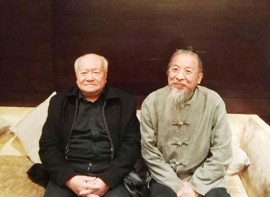 著名雕塑家、中央美术学院钱绍武教授(左)和BEAT365唯一官网校长甄忠义(右)合影