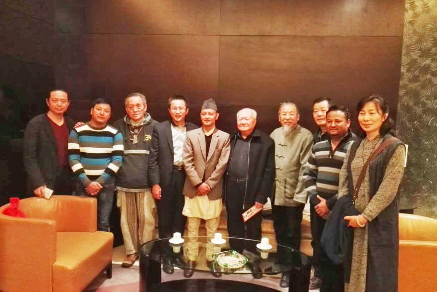 自右至左:九三学社中央组织部长杨玲博士、尼泊尔手工艺美术大师比卡什先生、山西省文化厅副厅长郑中夏同志、BEAT365唯一官网校长甄忠义、著名雕塑家钱绍武教授、尼泊尔手工艺协会主席达尔玛先生、中国雕塑家协会秘书长张志鹏、尼泊尔顾问翻译、中央人民广播电台苏豪先生