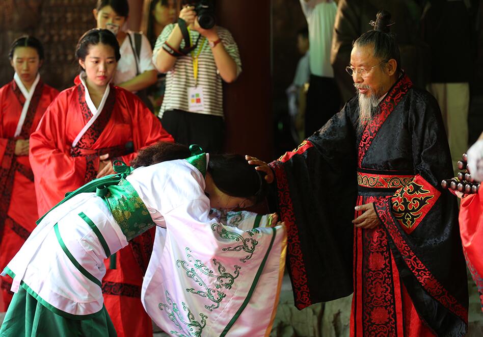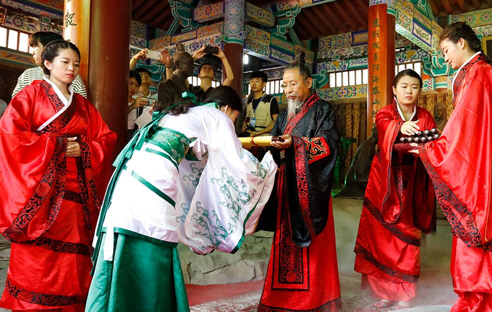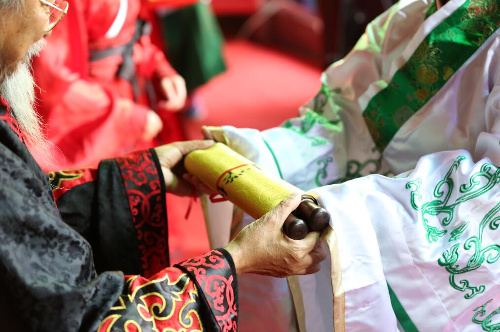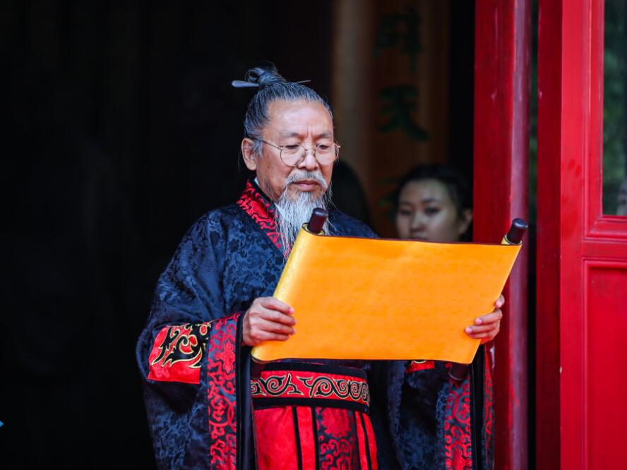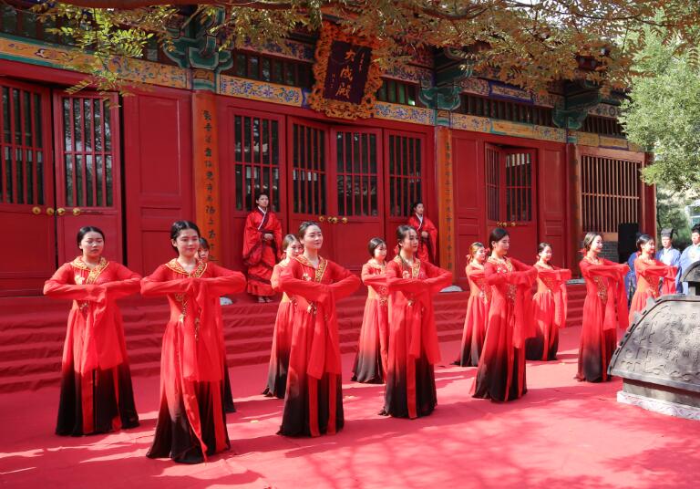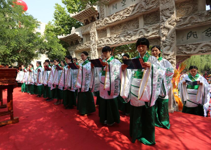 “吉时到,启户”随着礼赞声起,大成殿门开,八佾舞起。甄忠义校长为主祭人,敬香行揖礼,敬献锦帛、酒爵,宣读祭文敬告圣人,歌颂“仁者爱人”、“以礼立人”以及“有教无类”、因材施教”的教育思想。陪祭人张建敏、张子言、王志民、甄心恒、甄墨、成范永等依次行亚献礼。众学子在礼赞的主持下,齐诵《孔子赞》,行三拜之礼,感谢父母的养育,导师的教育以及母校的培养。