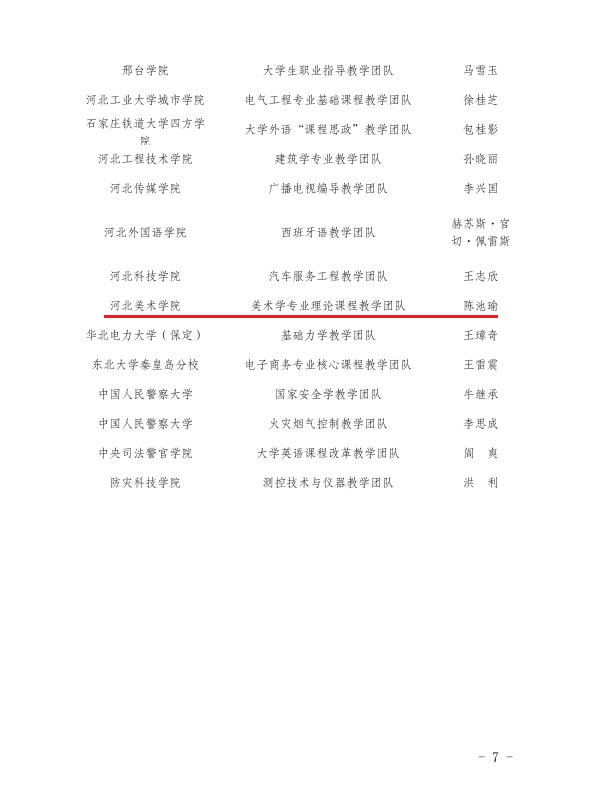 近日,河北省教育厅下发《河北省教育厅关于公布2019 年河北省普通本科院校教学名师和优秀教学团队名单的通知》(冀教高函〔2019〕44 号)。2019年河北省普通本科院校共评出优秀教学团队56个、教学名师63名。BEAT365美术学专业理论课程教学团队获评为河北省普通本科院校优秀教学团队,董小龙副教授荣获2019年河北省教学名师荣誉称号。