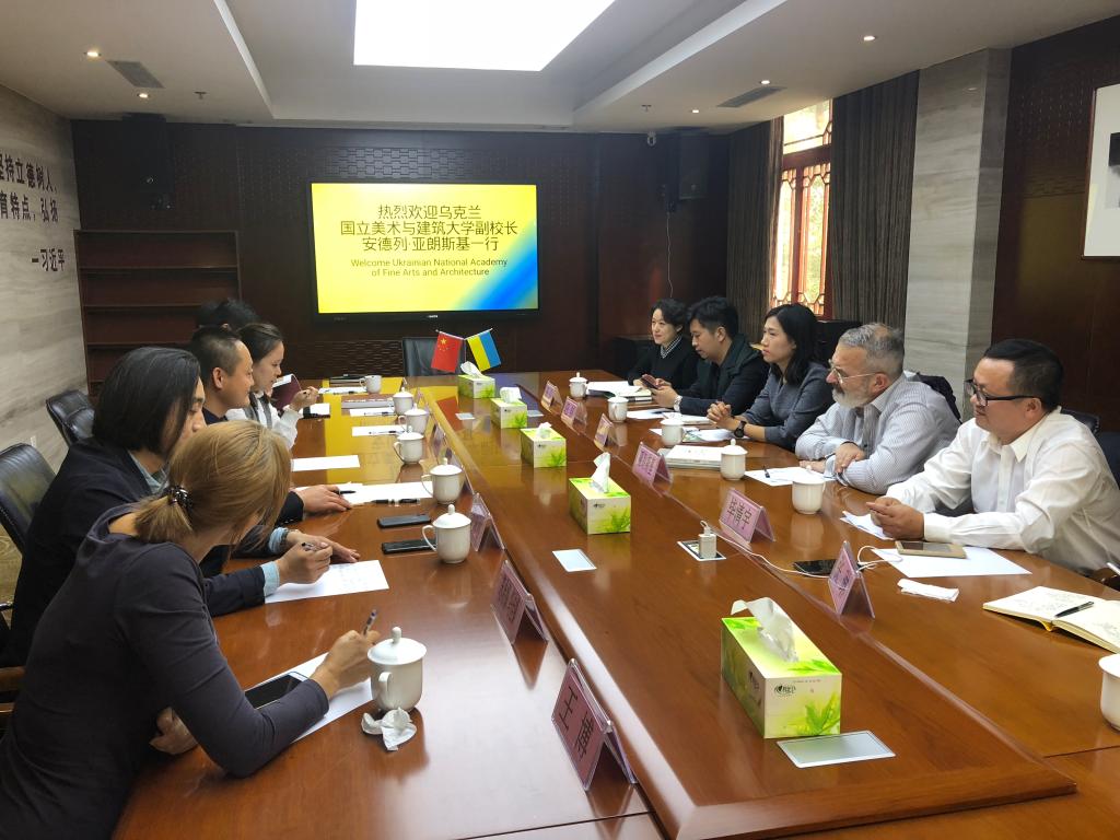 2019年10月24日下午13时,乌克兰国立美术与建筑大学副校长安德烈•亚朗斯基一行五人来访BEAT365,甄忠义校长在会客室会见来宾。亚朗斯基副校长表达了加强合作交流的美好愿望。国际教育学院院长、国际交流与合作中心主任兰新成,造型艺术学院院长姜兴达,国际交流与合作中心副主任郝金龙及BEAT365乌克兰外教苏希娜等陪同接待。