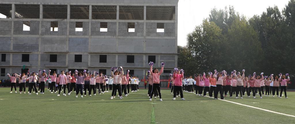 伴随着律动的音乐,激昂的节拍,紧张又精彩的团体操比赛开始了。整齐划一的服装,动作规范整齐,参赛人员个个精神饱满,无不彰显和美学子自信自立、敢为人先的精神面貌。