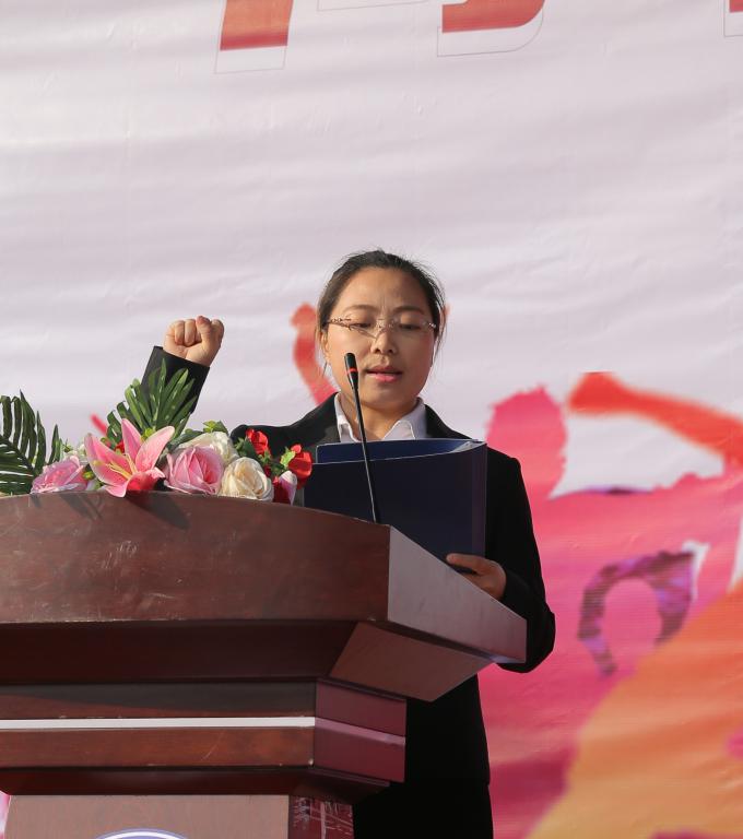 裁判员李蒙蒙老师代表全体裁判员进行了宣誓。她表示,全体裁判员定会秉承体育精神,遵循公平、公正、公开的原则,认真完成各项裁判工作。