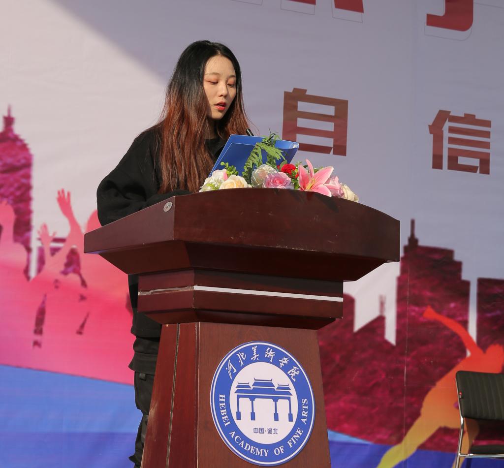 运动员代表李艳阳发言。她认为少年强则中国强,要认真对待比赛,赛出友谊,赛出成绩。在场的每一位运动员都是运动场上的主角,同时也是运动场上的主人。运动员们的一言一行,不仅代表着个人,更代表着运动员的精神与素养;运动员必须严格服从老师和裁判的指挥与要求,遵循“友谊第一,比赛第二”的原则,赛出友谊,赛出成绩。
