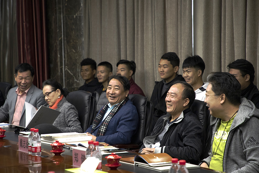座谈会上,甄忠义校长进行致辞,代表全校师生热烈欢迎姜昆一行的到来,并对学校的基本情况进行了介绍;传媒学院王峰院长向来宾们介绍了传媒学院的情况,欢迎姜昆先生对相关专业进行指导。