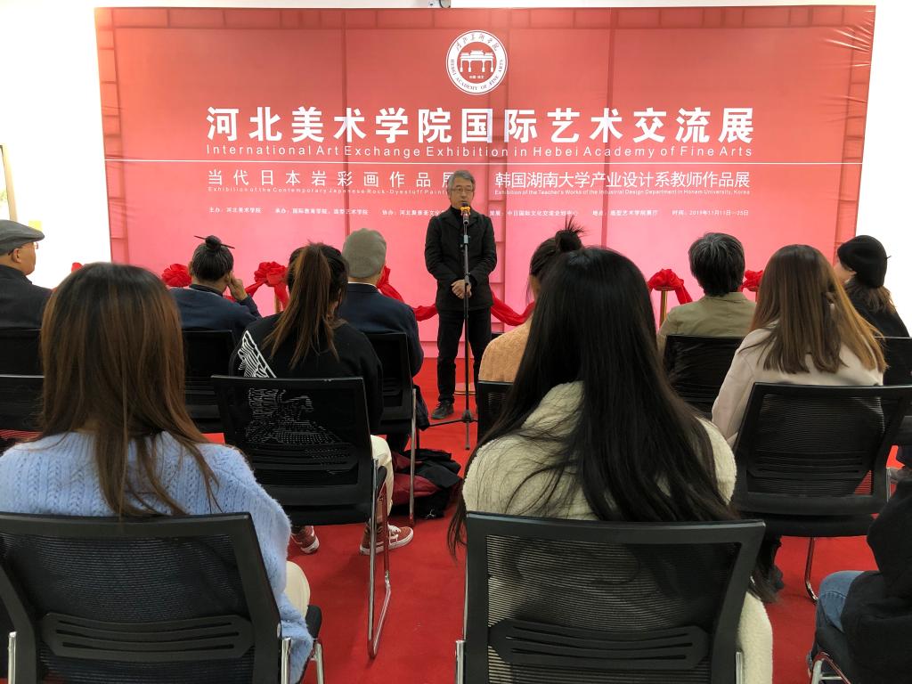校长甄忠义代表全体师生向前来参加展览的各位嘉宾表示热烈欢迎,并表示艺术交流展是贯彻开放式办学理念,促进教育教学水平提高的重要途径。党委书记高国忠代表校党委感谢各位艺术家莅临BEAT365指导交流,希望以此次展览为契机,促进国际交流不断发展。随后,来自日本的画家和韩国湖南大学吴泰元教授分别致辞。