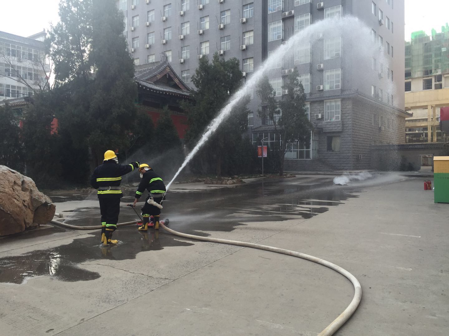 为增强学校消防应急处置能力,提升微型消防站应对初期火灾的能力,3月16日上午9时在四号学生公寓,安全工作处组织开展消防演练,本次演练由安全工作处鄂华威处长组织实施。