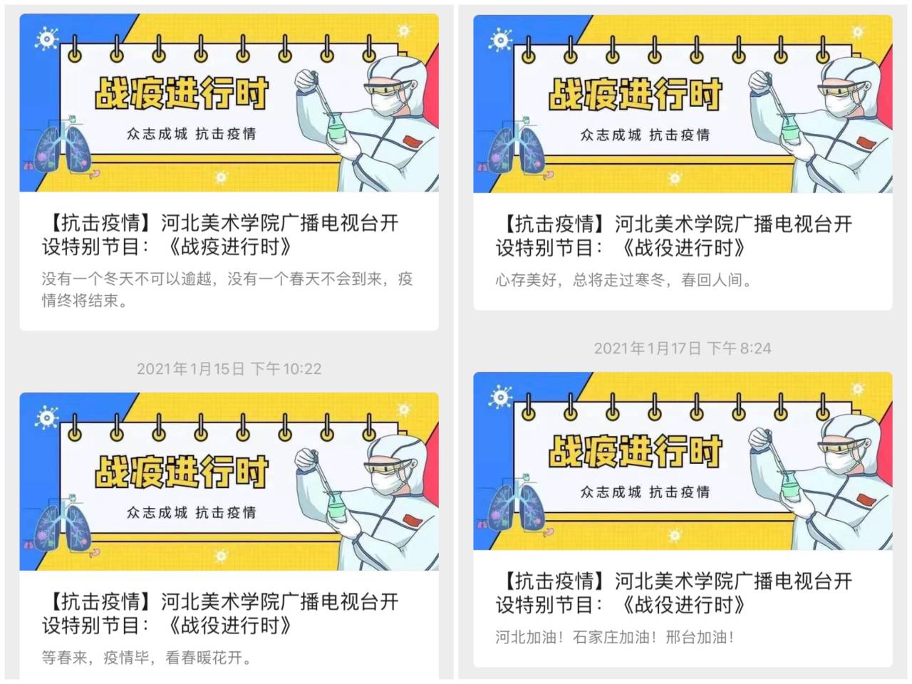 2021新年伊始,新冠肺炎疫情向石家庄袭来。面对疫情,校团委积极响应上级号召,迅速动员,并组织师生开展线上团日活动、组织志愿服务、传播防疫知识、网络文化作品征集、宣传榜样故事,带领广大团员青年学生为防控疫情贡献青春力量。