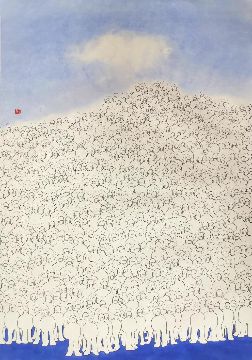 《集结号》作者邵雅楠 材质纸本水墨 尺寸37cmX60cm