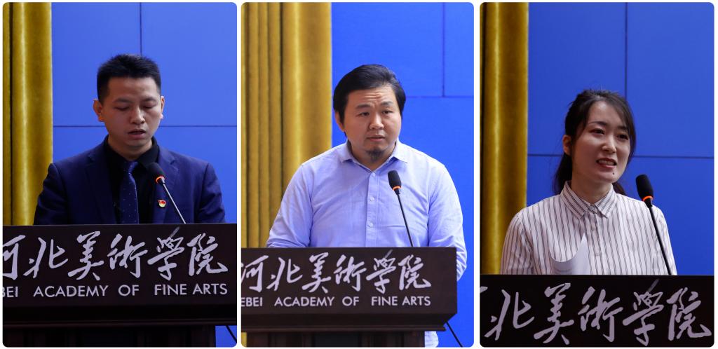 职能处室负责人代表、教务处处长、评建办副主任齐志辉,教学单位负责人代表、动画数字艺术学院党总支书记、院长姜仁峰,教师代表、建筑与艺术设计学院教师张思佳在发言中分别从各自的角色定位分享了参与评建工作的历程、收获、体会以及对学校未来发展的信心和期待。