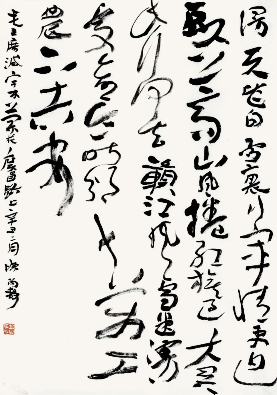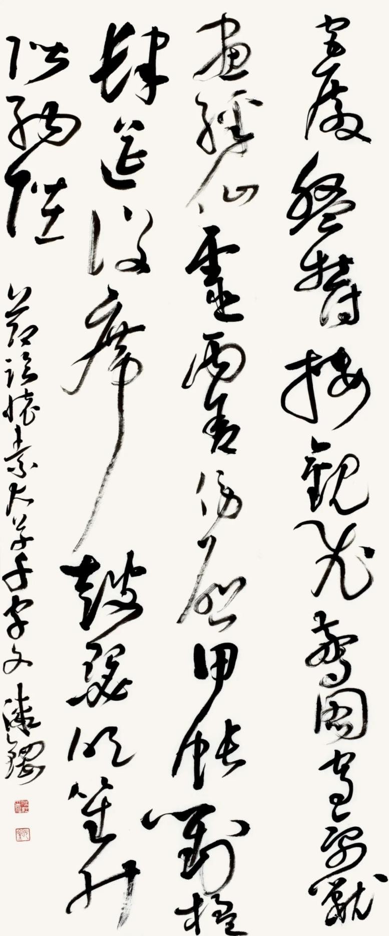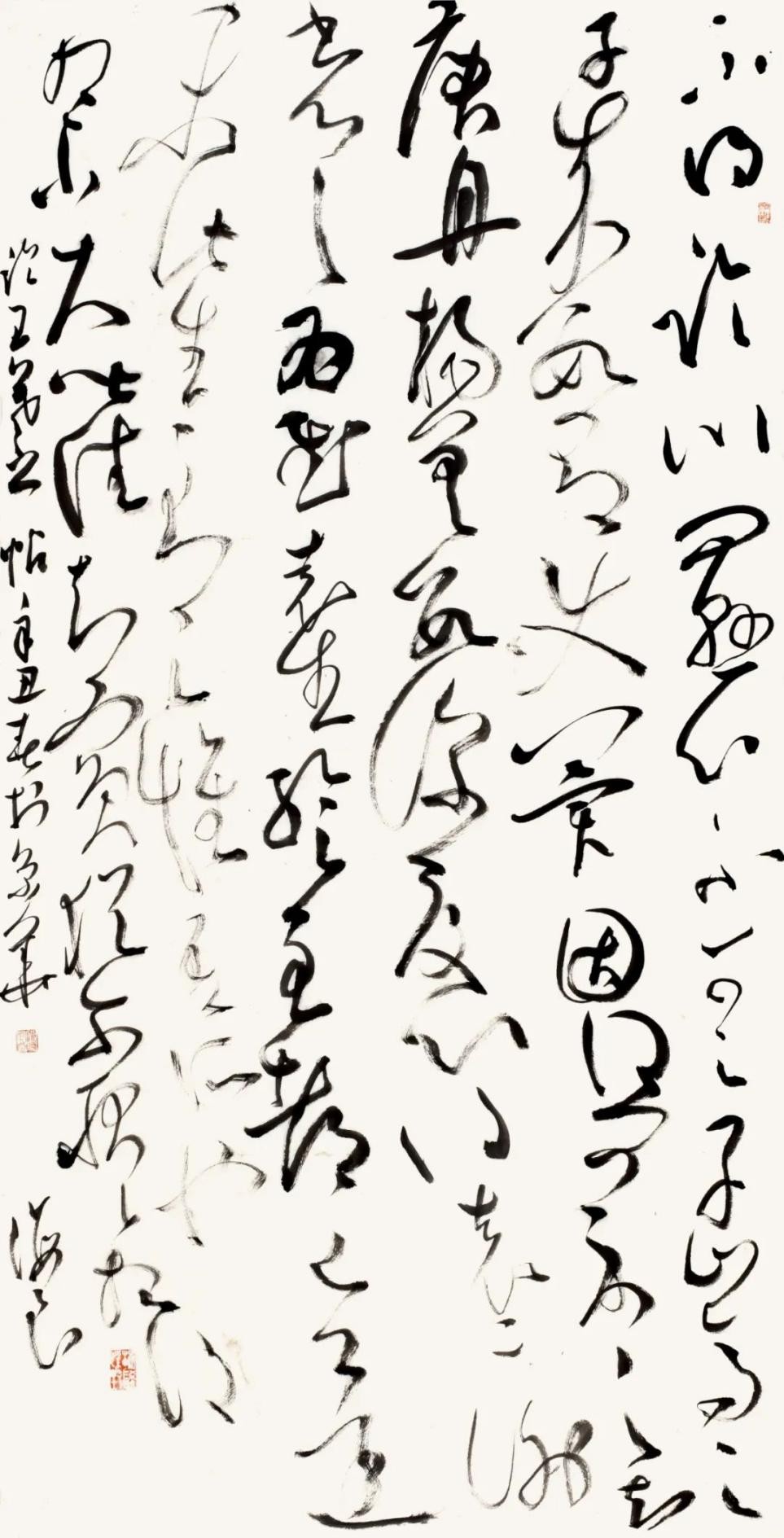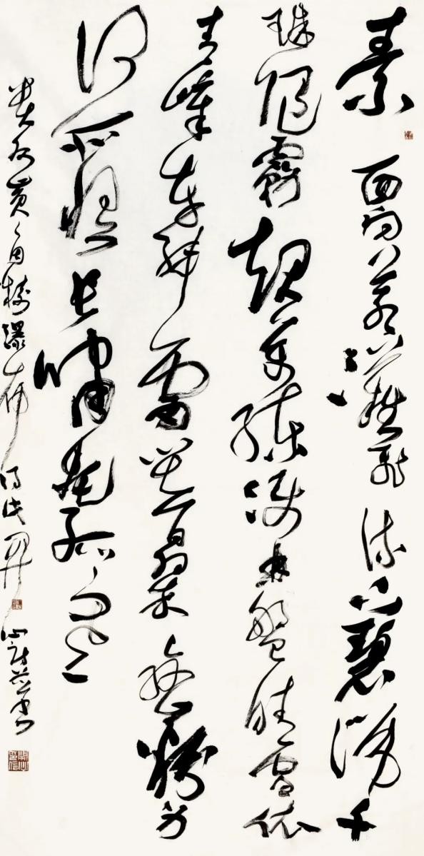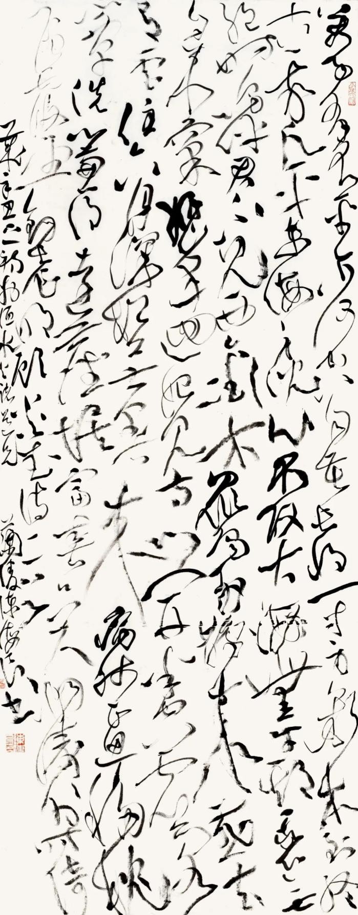 考虑到当代书法于古典传统的恢复只有短短的四十余年,它的再生还带着很多不确定性,并且几乎是在一个时代的剖面上,而要承受来自传统,近现代与西方现代性三个方面的冲击并需作出应激反应,如此一来,我们对当代书法便不得不抱有某种宽容与同情。 也几乎在同时,当代书法便被命定地抛入一个危机性境遇,而不得不承受某种天命,它既不能不加改变地与传统共存,也不能游离于经典传统之外任意而为。而要建立时代性权威,则几乎无法在经典传统与时代风格创造之外去寻找。“更进一步的问题,在何种程度上,古老的视觉产生被引入新的艺术风格阶段。一种永久的艺术发展是如何和一段特殊的艺术发展相混合的。这些问题都只能结合具体情况进行分析。”(沃尔夫林《艺术史的基本原理》)这一点可能是尤为重要的。站在中西碰撞的现代境遇来审视本土古老传统书法,很容易产生一种激进情绪和变革冲动。现代性以一种天然的合法性给艺术家以鼓动,而走向变革与冒险。由此,当我们对现代性处于被动接受之际,它对本土文化艺术的冲击与伤害便势在难免。不得不承认,我们当下仍处于一种被支配的现代性惯性之中。在这种现代性观念支配下,很难冷静理性地思考书法经典传统与本土文化命运问题。书法也不例外。很多情形下,我们往往将传统作为现代的对立面,因而对传统与现代缺乏主体间性的思考,而尤为强调了两者之间的对立冲突。由此书法便成为单面的存在。而更为致命的是,在对现代性偏面的理解下,形式冲动代替精神本体成为现代性的标志。书法由此丧失了精神本源与历史文化向度。 瞻顾书史,古老书法传统是这样一种产物:它由内容(文化)积淀为形式,而不是单纯的形式化。草书尤其如此。它将书法线条抽象化到极致而贯通形上哲学。“一条线通贯着大宇宙。”(罗丹语)因而宗白华说:“中国书法的线不是西方几何的线,而是一阴一阳之谓道,宇宙自然的气韵变化。是道舞空白的大化流行。”从这一点之笔流出万象之美。开始于一画,既流出人心之美,也流出万象之美。”(《美学散步》) 中国草书的线条,更是体现出阴阳往复翕辟,气韵生动即生命的节律。而张彦远在《历代名画记》中所称“气脉通连,隔行不断”即指“一笔书”阴阳通贯,无不往复。天地之际的绵延之维与生命之道。也表明狂草的最高精神与宇宙自然相融合。 “当代大草十家学术邀请展”,应该说不是一个一般意义的应酬性展览,而是带有批评的立场与目的。它与“晋唐一体—— 全国草书史学术论坛”同时举办便明确表明了这一点,进而也增强了它的学术性与史学性。草书发展到当代,已提示出将草书置于书史语境与“问题丛”中加以审视批评的重要性。质言之,当代草书已进入到需要历史化的进程之中。长达两个世纪的碑学对帖学的统辖已经终结,晚清民初以来持续产生创作效应的碑帖融合一路也已趋于式微。帖学已然独立并推动帖学获得复兴与拓化,这为当代草书创作带来先机。只是当代草书家准备好了吗?这种现实的发问无疑还是必要的。“我们需要多角度的观点和不同看法”。这至少需要从草书史的立场来认识与厘清草书史的周期性与连续性及草书史高峰的标立;其中最重要的则是草书史风格的衔接与嬗变及价值确立。“既使是最卓越的天才也不可能超越一些设定好的限制或超越它的时代,并不是总是一切皆有可能。特定的思想也只能在某个发展进程中才会产生。”(沃尔夫林《艺术史的基本原理》) “当代大草十家学术邀请展”无疑集聚了从20世纪50年代横跨80年代四个年龄段的当代优秀的草书家。十位书家在草书创作领域有着无可争议的代表性。他们的草书创作风格各异,对草书的取法阐释有别,但其共同点则表现在皆以其个性化的草书创作表达了他们的草书审美理想。他们的草书体现出草书经典传脉的当代表达,是草书发生价值转换的重要界面与一环,通过他们的草书创作甚至可以对当代草书存在状态作出一定价值判断,从而体现出他们草书创作的当代张力。但正如当代书法经过四十年发展,又归结到一个新的节点与转捩一样。他们的草书创作也面临着一个节点,即是满足或停留于个性意志的创作,还是选择有难度的艺术史进步意义的书法创作。对于草书家而言,选择了草书就等于选择了书法史意义上的挑战,这种创作选择本身就包含着历史与现实、风格与精神的双重结构,同时还寄寓着思言道的定在。正如方闻在《心印》“伟大的传统”导言中所说:中国的文学、书法和绘画,不但有一个完整而连续的历史,而且这历史还与一个强大的道德精神传统—— 一种有精神目的却又充满自由多样行为的意识是共同发展的。注重道统,不具备对文化传统中道的认识,任何独特的或者怪异的思想,不管有多么奇警,只能导致妄作,不能载入新的史册。对更新传统原理轮回的信赖导致了种种人在实践上模仿古代典型的心理。以后历代成功的更新无不有赖于恰如其分地复兴古代的风格(《心印》)。 由此,在本土传统文化包括书法整体复兴的主潮中,反思西方现代性和固守本土文化价值—— 穿越西方回到中国,是一个重要课题。中国传统书法与古典文化传统相似,皆是思言道的统一,而不是西方形式化的单维扩张,认识把握到这一点无疑是至关重要的,它表明中国书法