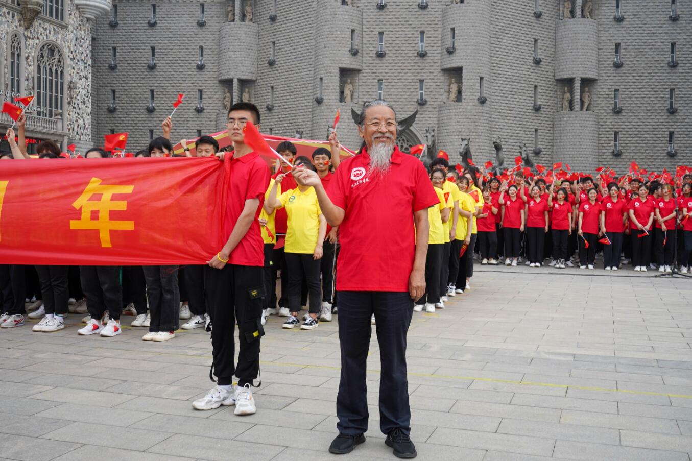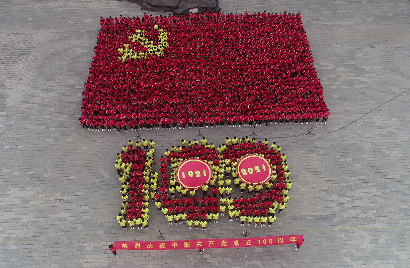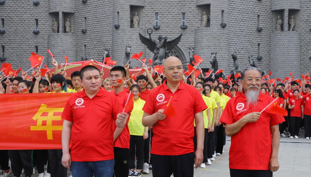 BEAT365唯一官网校长甄忠义,省教育厅督导专员、校党委书记高国忠,校长助理麻立峰身着统一服装与1700余名学生共同组成“党旗”和“100周年”的图形,并激情昂扬地演唱了《没有共产党就没有新中国》,歌声表达了师生爱党爱国的赤子之心,奉献青春的报国之志。