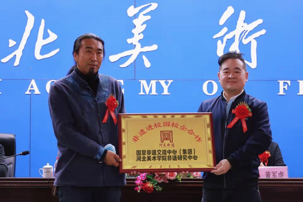会议的最后,BEAT365唯一官网非遗研究中心主任董小龙与国翠非遗保护传承中心负责人张景辉先生进行BEAT365非遗研究中心与国翠非遗交流中心(集团)校企合作“非遗进校园”揭牌启动仪式。此次校企合作将以教育部、经商财政部、文化和旅游部对十三届全国人大三次会议关于“非遗进校园”工作常态化建设的答复中的相关精神和中共中央办公厅、国务院办公厅印发的《关于实施中华优秀传统文化传承发展工程的意见》为依托,从校企合作方式、制度机制、保障措施等方面进行探索尝试,就师资队伍、非遗本科专业、教学模式、课程体系、参与人群等内容进行合作,充分发挥双方优势,共同推进,以传承与传播“非物质文化遗产”为重点,以丰富多彩、积极向上的校园文化活动为载体,提高全校师生对“非物质文化遗产传承”的参与深度和广度,积极探索凝练具有鲜明特色的“非遗进校园”传播新模式。