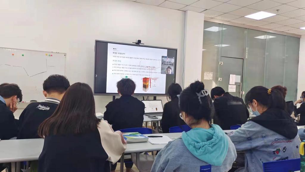此课程采取线上线下相结合的形式,由韩方教师进行线上授课,同步配置中方校内教师全程线下辅助授课,结合国内行业发展情况讲授相关知识,同时帮助学生们更好地学习、理解外教老师教学内容。