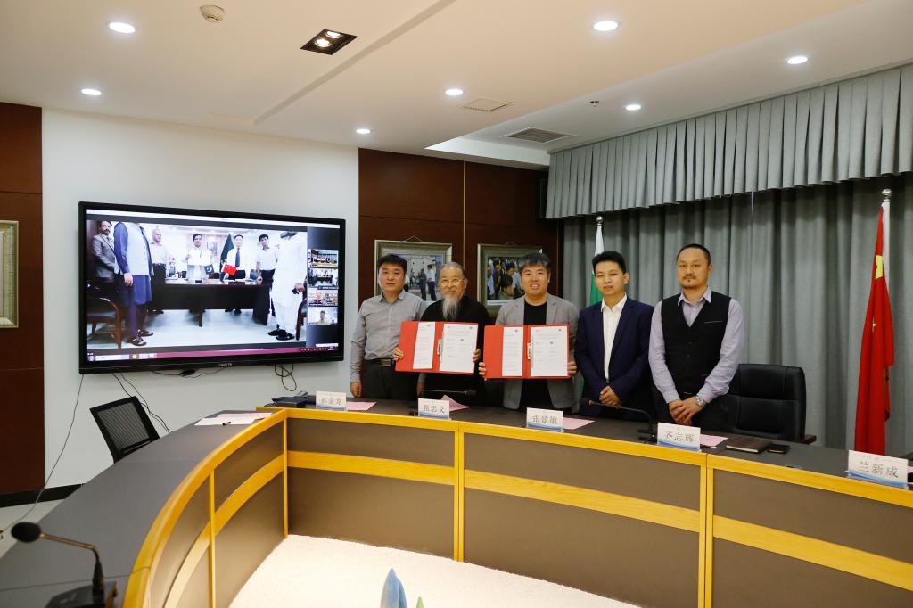 甄忠义校长与Talat Naseer Pasha校长各自介绍了两校基本办学情况,并就教师交流、学生交换、科研合作等内容深入交换意见,双方线上举行了缔结硕博联合培养协议签约仪式。