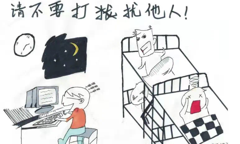 宿舍是同学们在学校的家,集体生活需要大家相互理解与关照。舍友休息时,要自觉放轻脚步、降低音量,晚归时更要注意在楼道、水房里轻声走动。相聚是缘,珍惜情谊,让我们一起营造和谐的宿舍氛围。