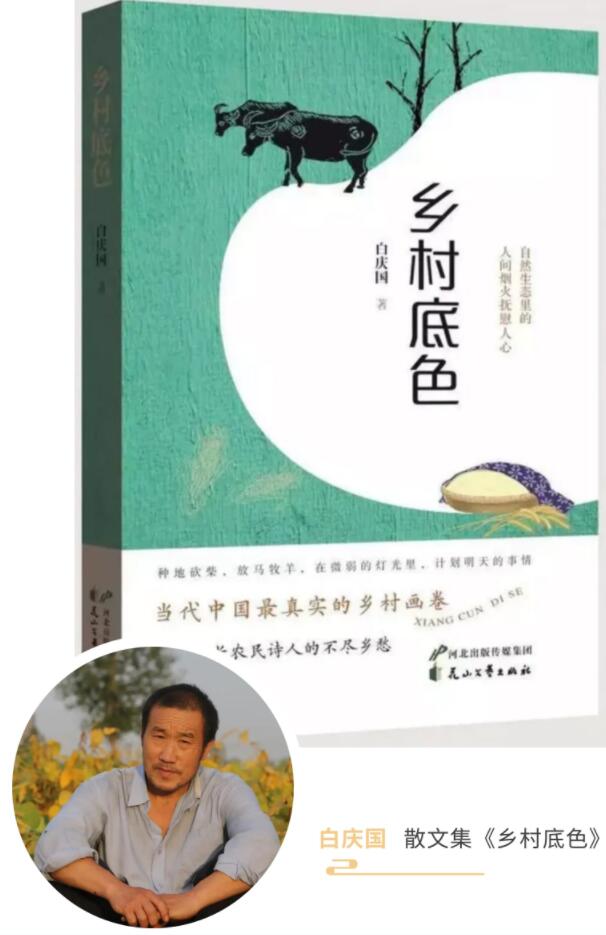 在《乡村底色》这部散文集中,白庆国写下了养育他的这片土地上发生的故事,还原了那些自然生活之中的美好记忆。书中文章感情真挚、细节丰满、语言朴实又有诗意,字里行间透着作者对乡村和土地以及过往岁月的深深眷恋。在他看来,散文创作与诗歌创作是相辅相成的,三十余年大量的诗歌练习也练就了语言的简洁干净和意蕴丰富,书中充满诗性的语言让阅读过程成为一种美的享受。
