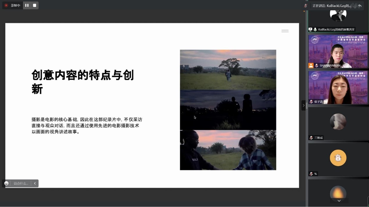 本次毕业答辩会,外国留学生们全程使用中文,结合所学专业知识就各自毕业设计的设计主题、选题目的、创新点、制作过程与收获等方面做了详细陈述,随后针对答辩小组教师们的提问进行了认真的回答。虽然留学生们在中文使用上还有些生疏,但是他们努力的样子更应该是其他学生学习的榜样。