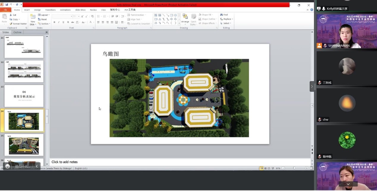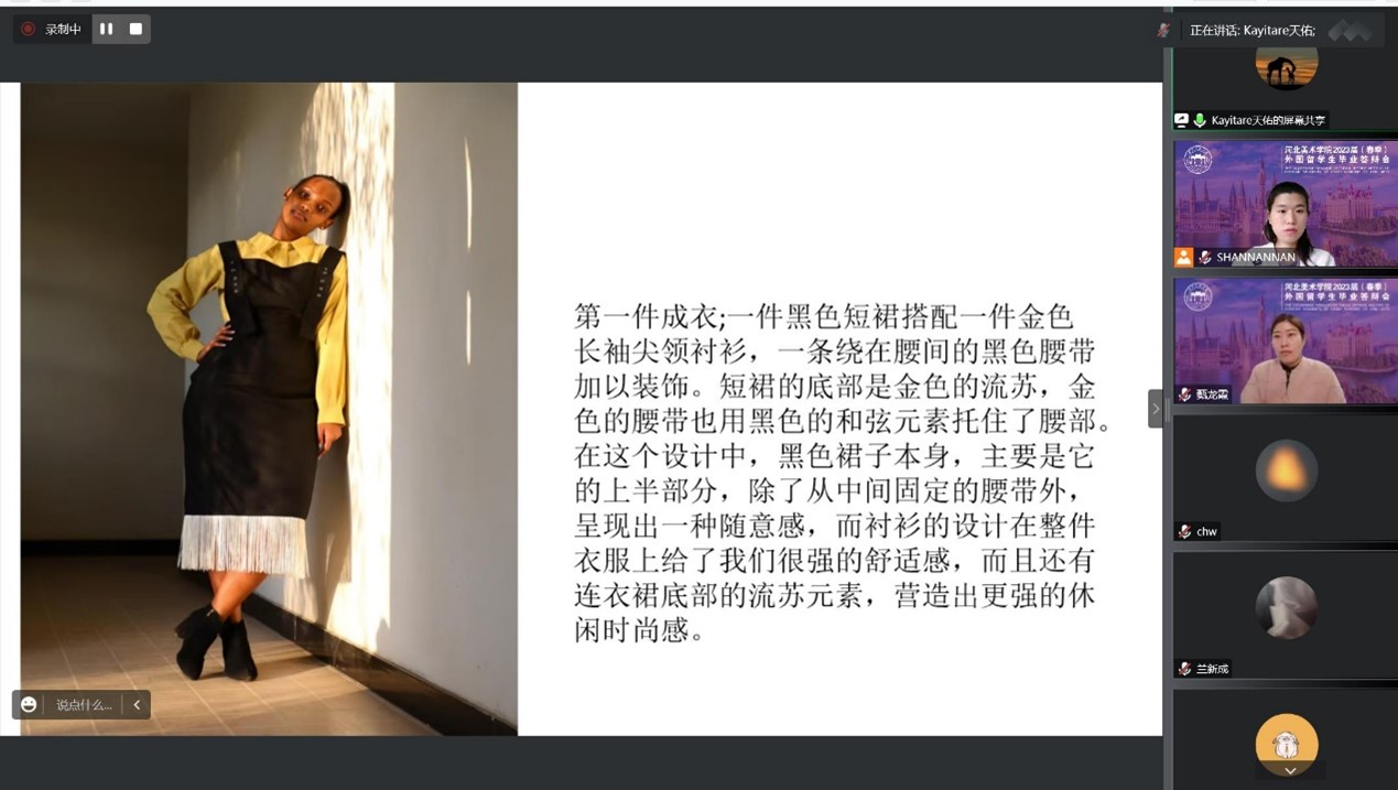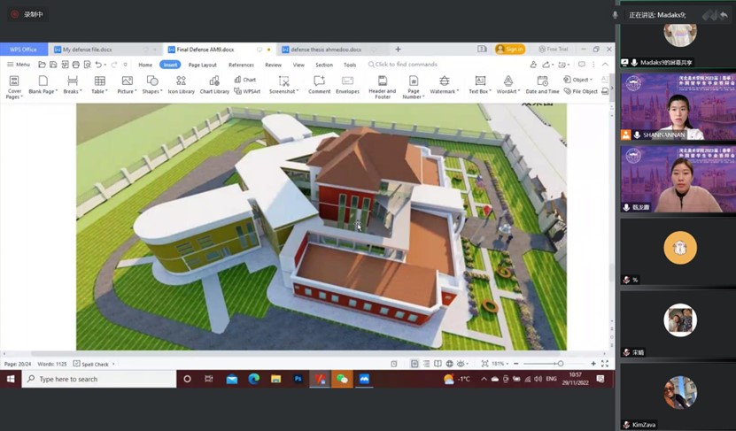 11月29日,国际教育学院联合建筑与艺术设计学院、影视艺术学院、动画数字艺术学院、设计艺术学院,组织进行了2023届(春季)外国留学生本科毕业设计(论文)答辩会。BEAT3652023届(春季)共有13名本科留学生,分别来自于卢旺达、尼日利亚、巴基斯坦、阿富汗等国。受当下疫情的影响,尚有1名同学滞留在校外,3名同学滞留在海外,因此,此次答辩会采取线上答辩的方式进行。
