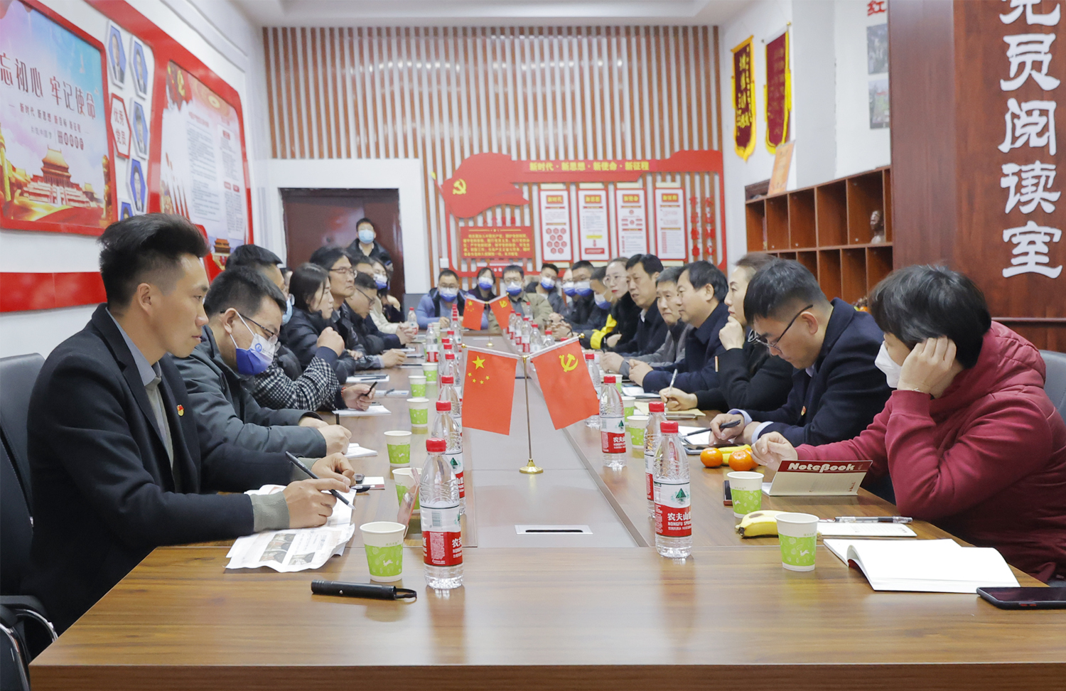 常新平一行在校领导的陪同下实地考察了红色文化长廊、红色文化情景园、党员活动室等。