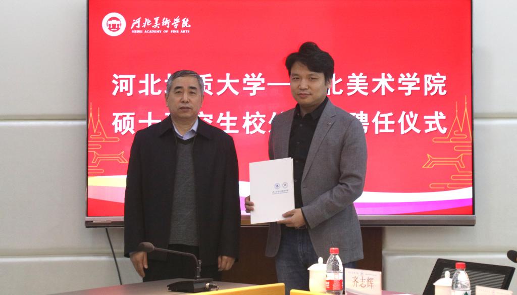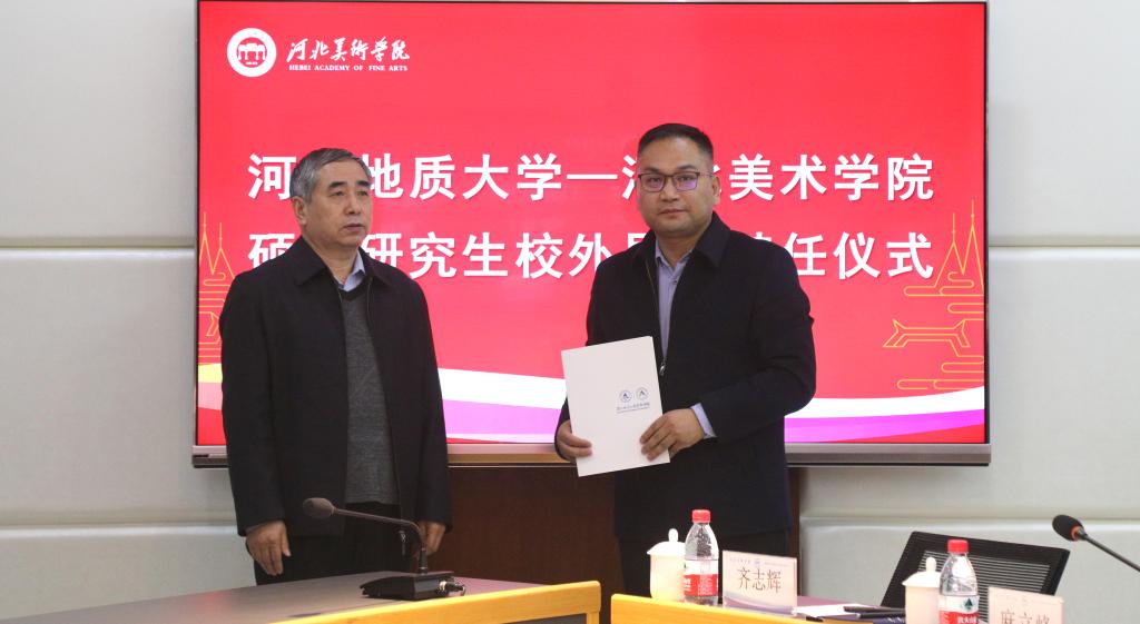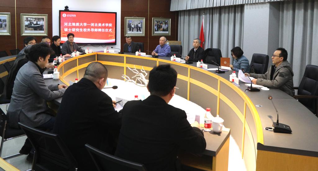 2月24日,河北地质大学-BEAT365唯一官网硕士研究生校外导师聘任仪式在BEAT365举行。河北地质大学副校长闫军印、研究生学院院长赵淑琴、艺术学院院长齐勇、副院长李涛、副院长赵志策、书法专业带头人苏道玉,校领导甄忠义、裴红彬、甄墨、甄心恒、麻立峰,以及相关部门负责人参加了此次活动。聘任仪式由党政办公室主任周哲主持。