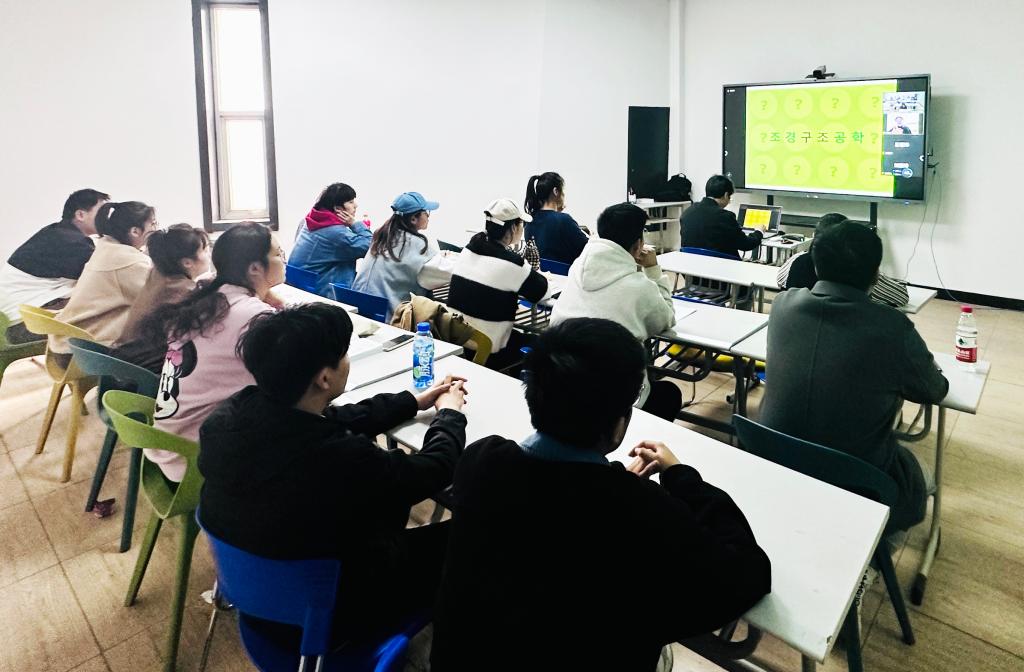 3月16日下午,中外合作办学风景园林专业外籍教师金昶国(김창국)主讲的《造景施工构造工学》顺利开课。本课程为期6周,通过ZOOM会议进行直播讲授,外籍教师金良纪担任线下课程翻译。